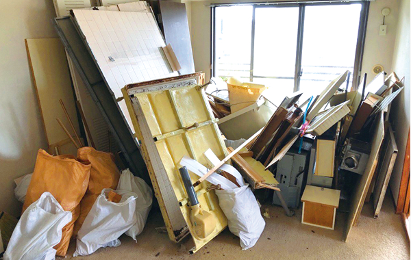 木くず・廃プラ・石膏ボードなどが混ざった解体工事後の廃材