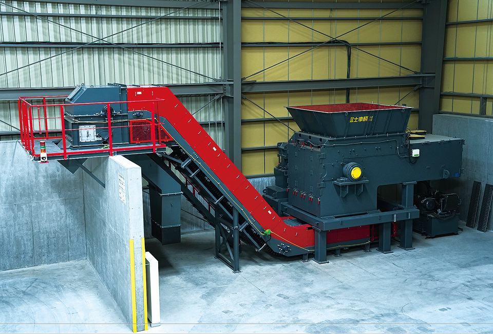 髙森RCSでは施設を拡張し新たに大型の破砕機や選別機を導入しました。本設備により、排出事業者様の前処理等の手間を大幅に減らして処理困難物や雑品・粗大ごみなどを受け入れることが可能となり、受け入れた廃棄物は破砕後に鉄系金属、非鉄金属類、可燃物などに選別し、その種類に合った方法で焼却、リサイクルします。