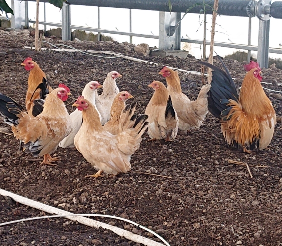 鶏(種類:ジョージョーカツラチャボ) コーヒー以外にもカカオ、パイナップルも栽培しております。右側3番目の写真の鶏(種類:ジョージョーカツラチャボ)は害虫駆除や地植えしているコーヒーの木の周辺の土を柔らかくする仕事をしております。