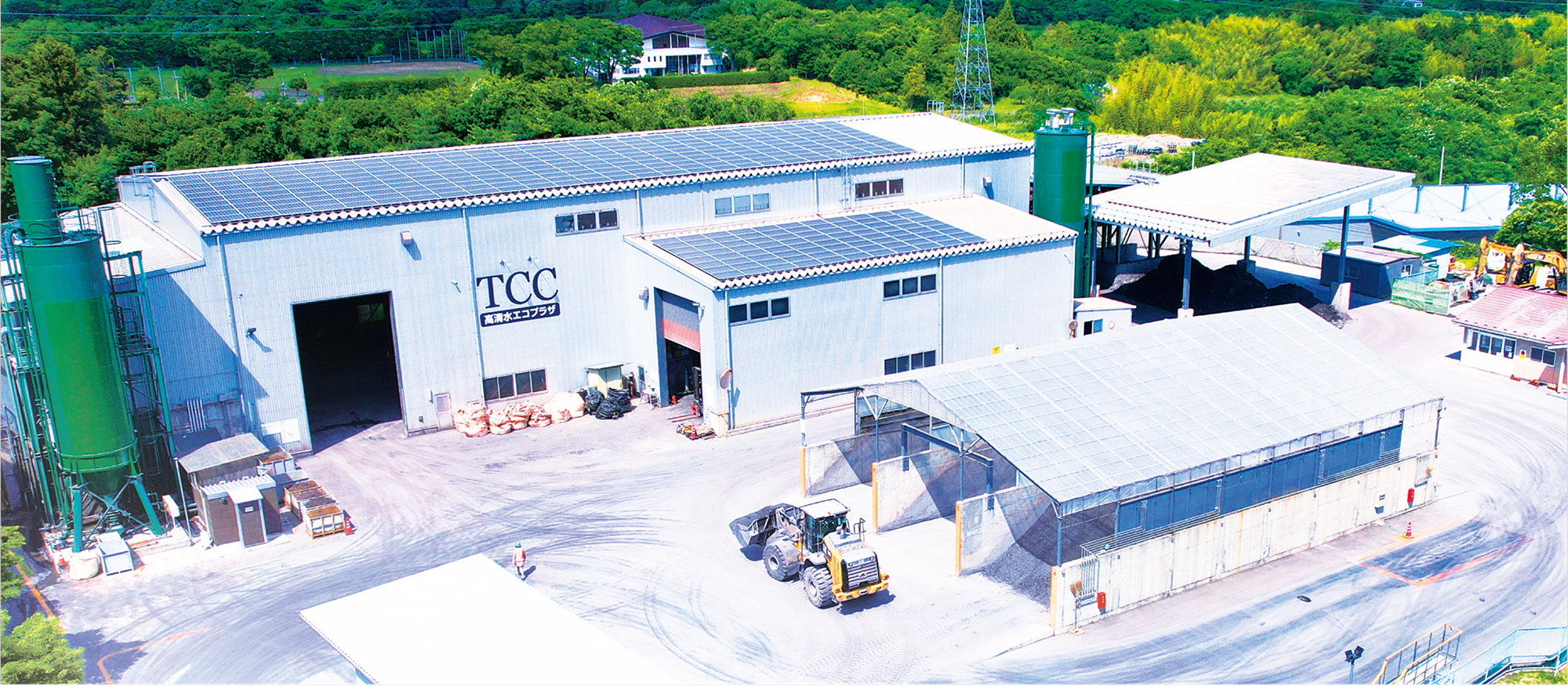 ※高清水エコプラザから出る排水をクローズにしており、貯水槽に雨水・井戸水を貯水し造粒固化製造に使用する混練り加水として再利用しています