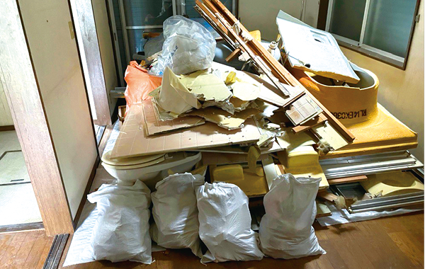 木くず・廃プラ・石膏ボードなどが混ざった解体工事後の廃材