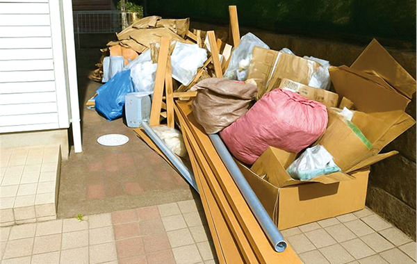 養生シート、紙くず、土のう袋などの外装工事後の廃材