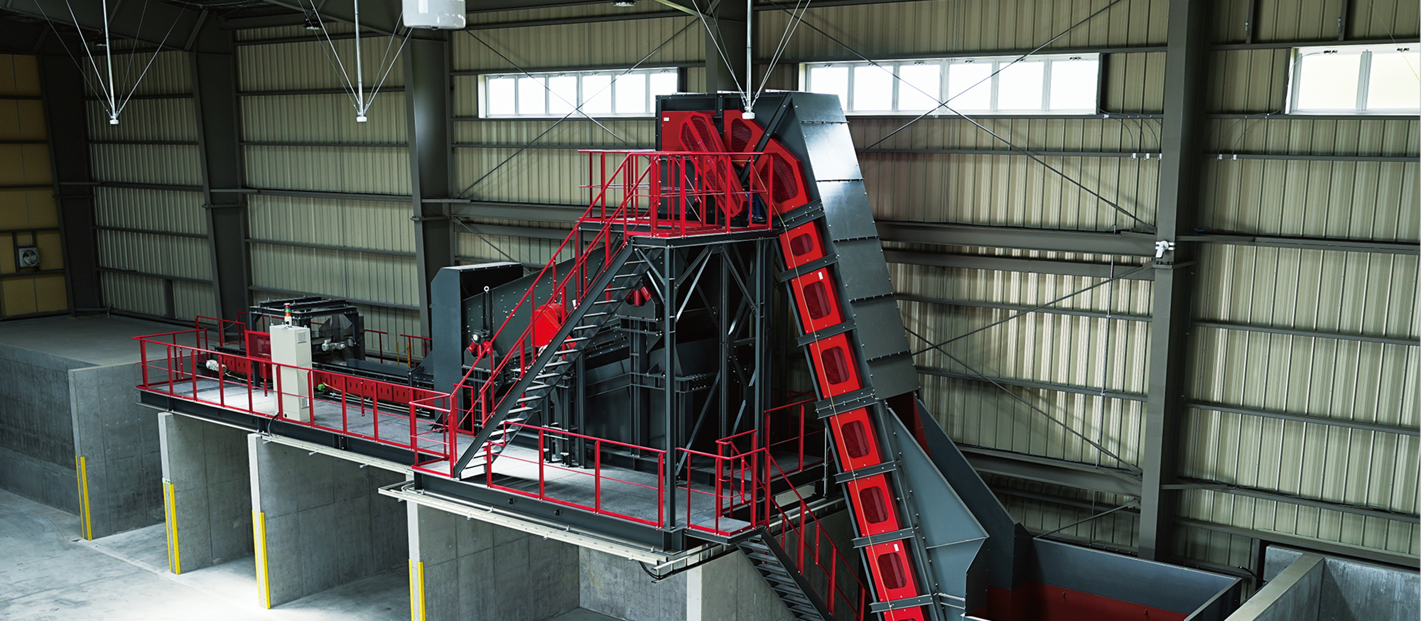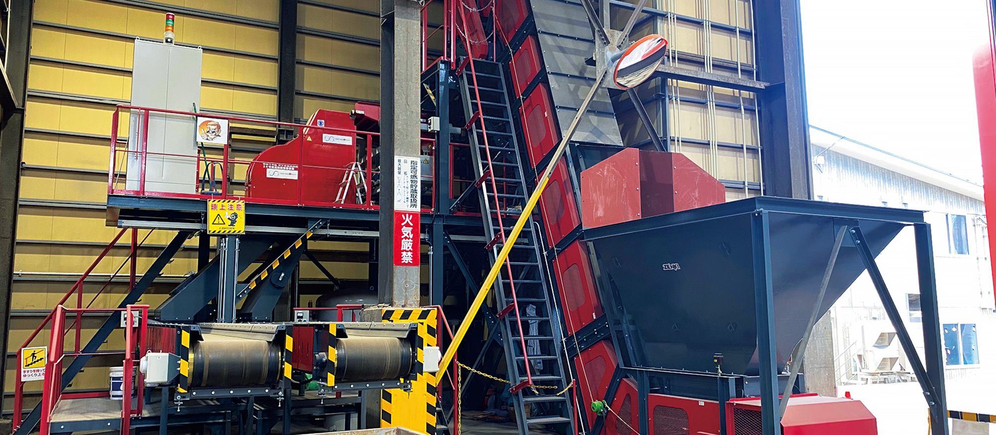 髙森RCSでは施設を拡張し新たに大型の破砕機や選別機を導入しました。本設備により、排出事業者様の前処理等の手間を大幅に減らして処理困難物や雑品・粗大ごみなどを受け入れることが可能となり、受け入れた廃棄物は破砕後に鉄系金属、非鉄金属類、可燃物などに選別し、その種類に合った方法で焼却、リサイクルします。